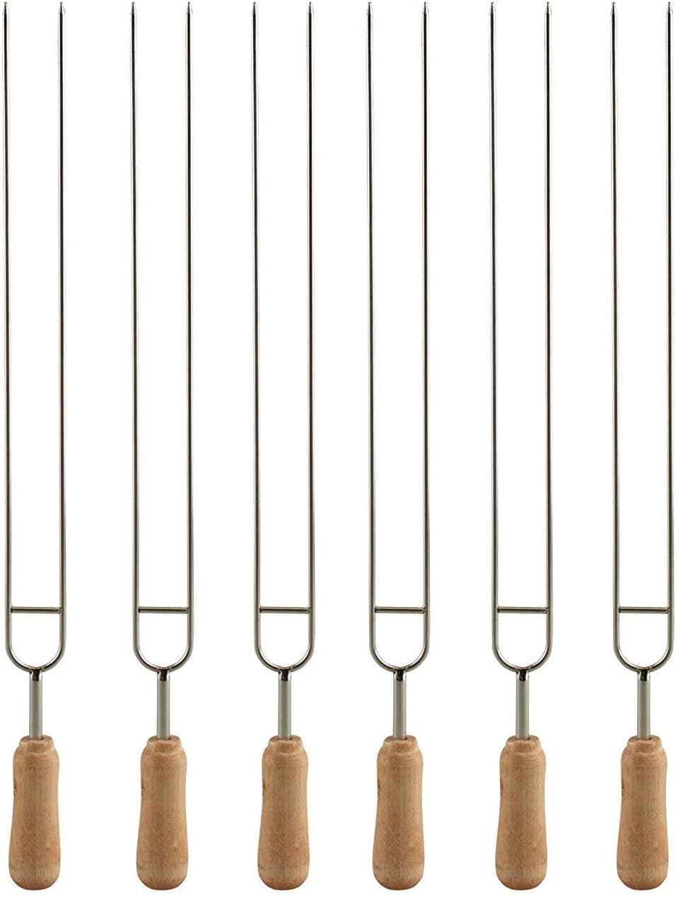 Carla Home Vikus 6Pk Double Prong Stainless Steel Blade with Wooden Handle Barbecue Skewers