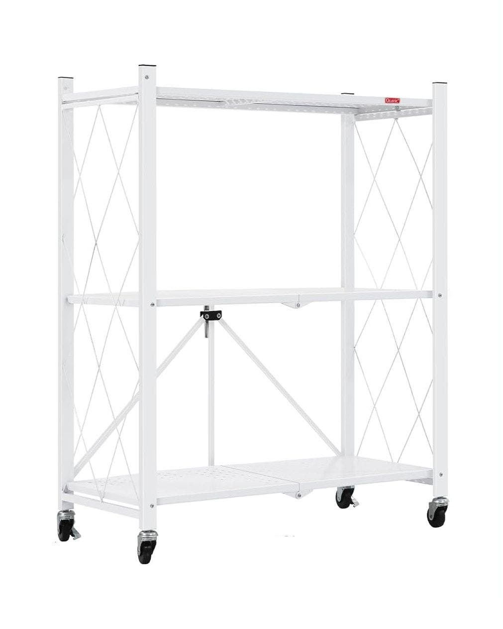 CARLA HOME 3-Tier Foldable Storage Shelf with Wheels for Kitchen, Garage, Pantry or Basement - White