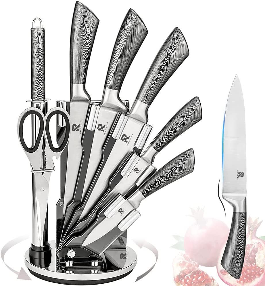 Kitchen Knife Block Set 8 Stainless Steel Knives with Wooden Color Handle (Silver color)
