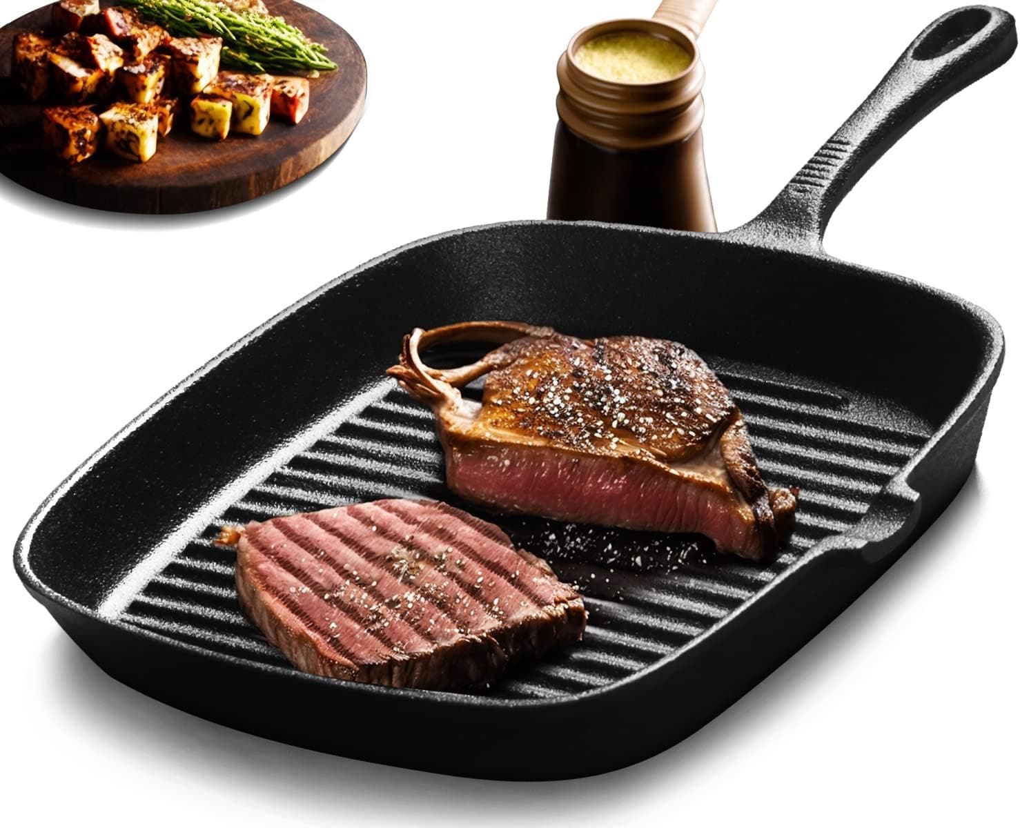 Carla Home Vikus 25cm Square Cast Iron Grill & Skillet Steak Pan